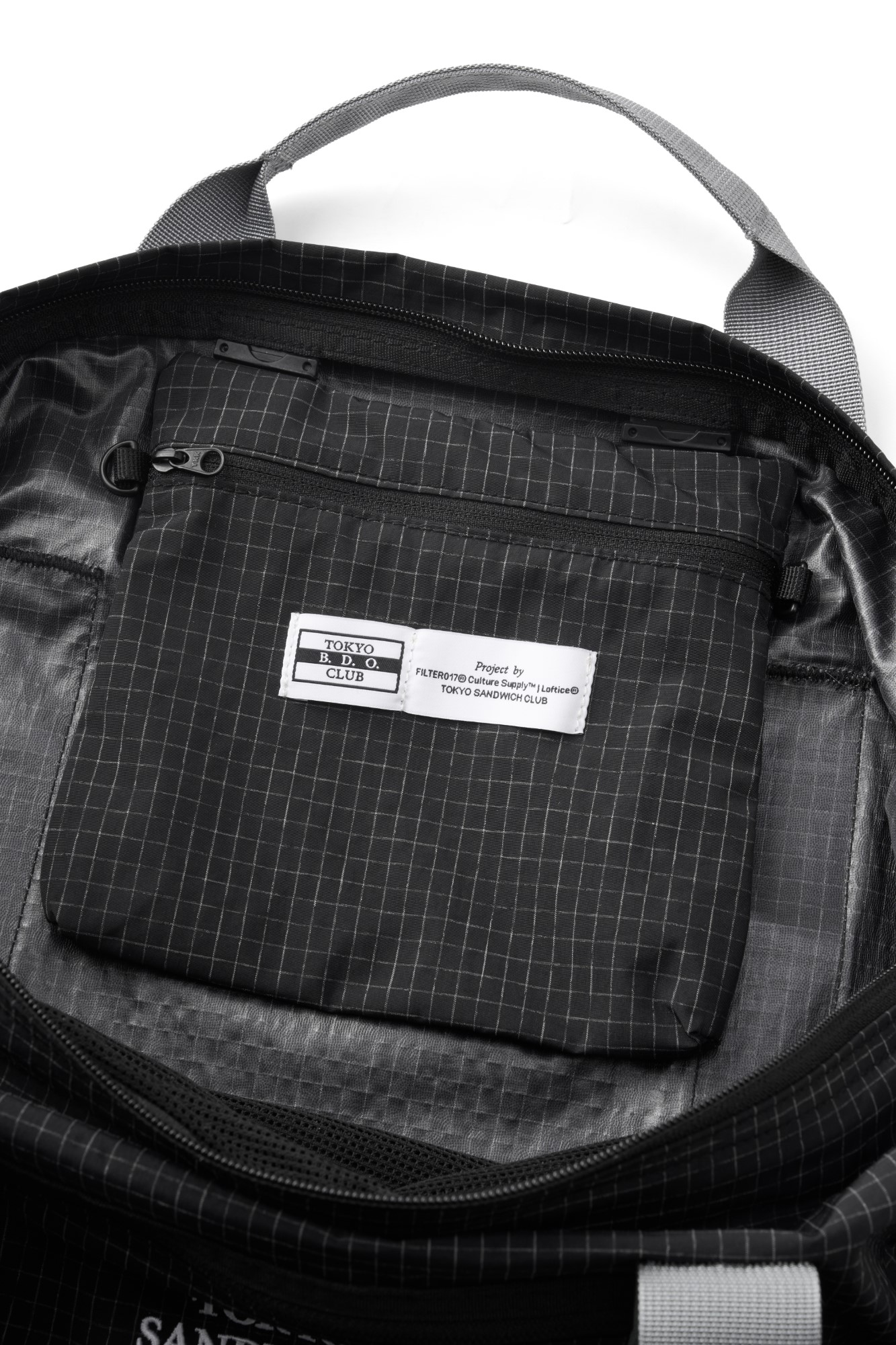 以Tokyo Sandwich Club 品牌經典圖像作為主視覺,此包款針對日常都市生活、旅行以及戶外活動需求所開發,一共由三個包袋組成,分別為主體、內扣小包(附背繩)與網布收納袋。主體採高密度防潑水尼龍面料,內貼合防水膜製成,可運用兩側插扣調節包體型態。內扣小包以快速拆卸的滑扣做結合,依需求可當內袋亦或搭配背繩單獨使用。網布收納袋平時作為內裡袋層,以拉鍊與插扣固定,增添收納的多樣化與便利性。整體多面向的結構設定,提供靈活與最大限度滿足於各情境。