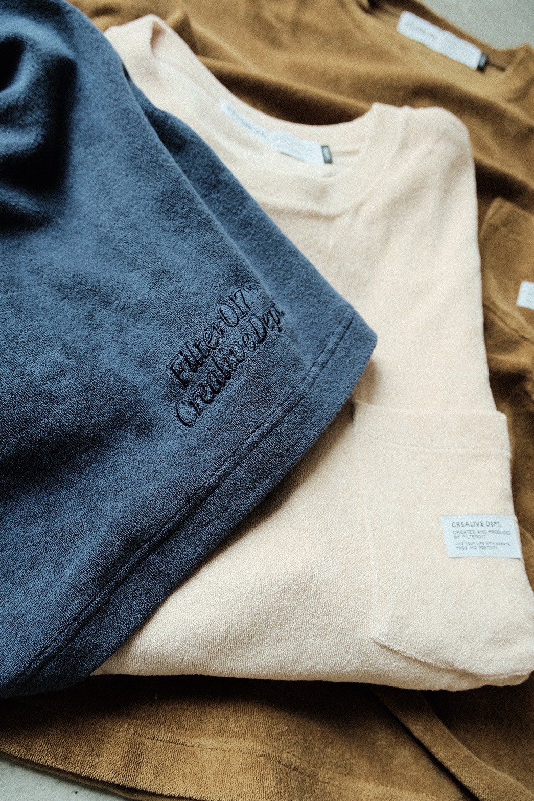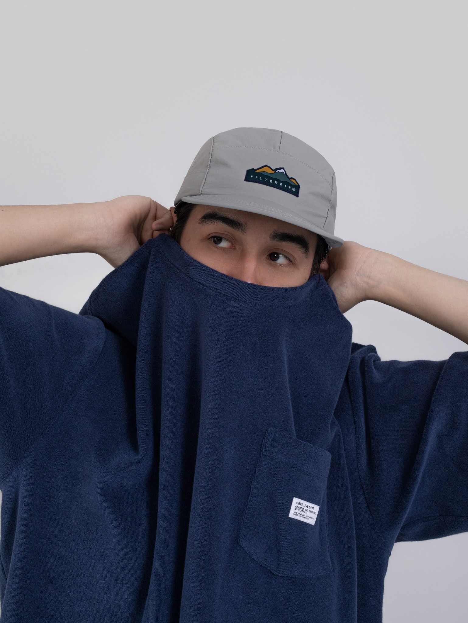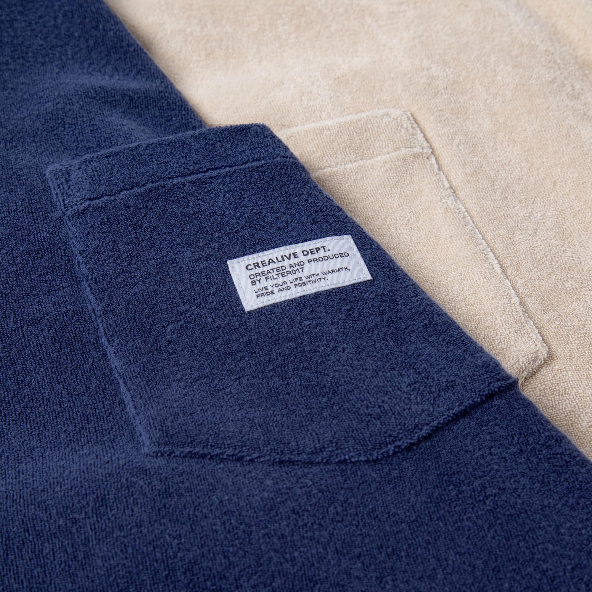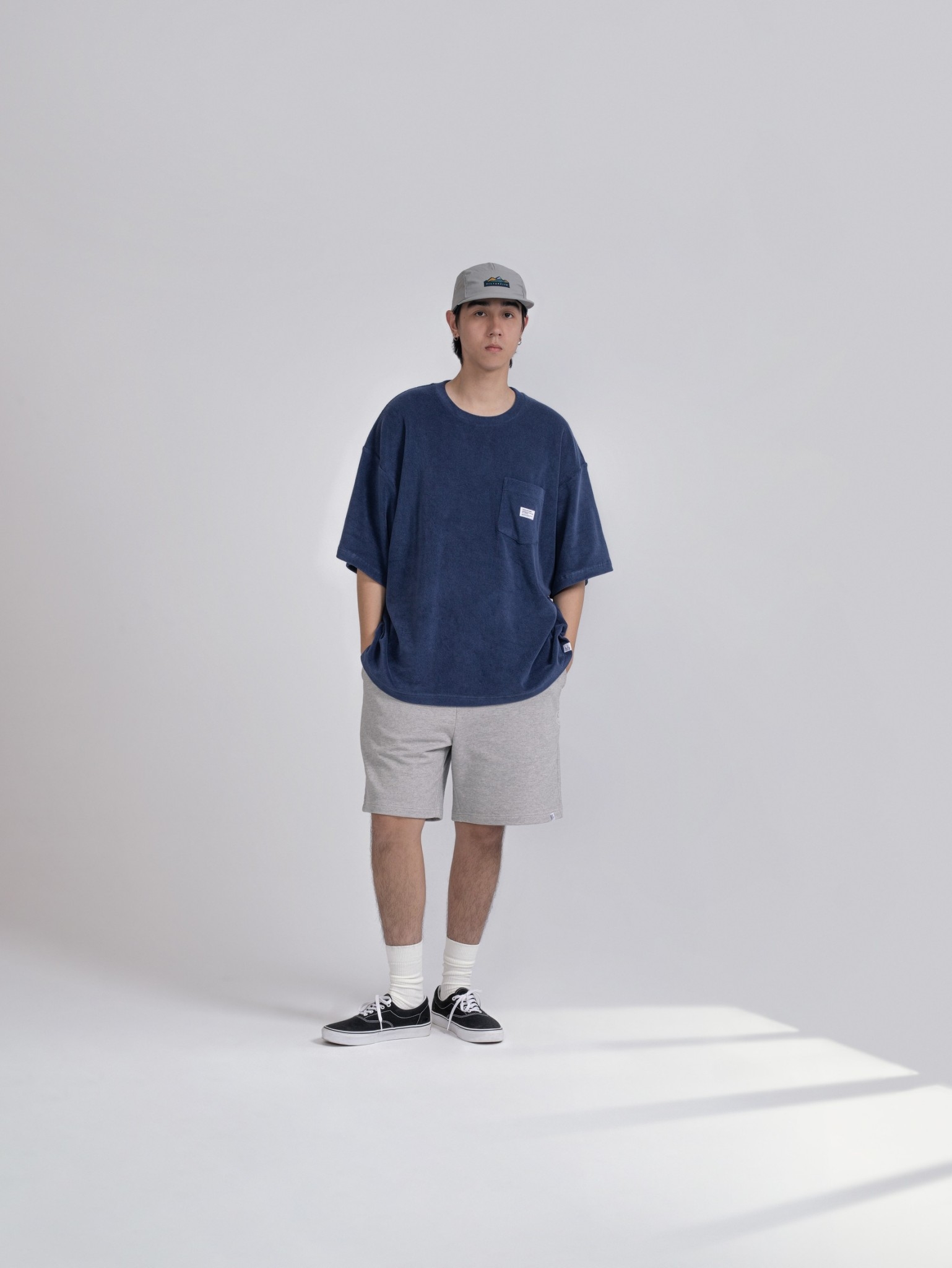 材質選用純棉毛巾布料製作,布料表面由細毛圈狀的組織構成,具有親膚、透氣、抗皺等特性,符合亞洲氣候需求,柔軟質地更是讓視覺上帶有自然垂墜感的鬆弛氛圍,無論在日常休閒或戶外皆能帶來絕佳的穿著體驗。