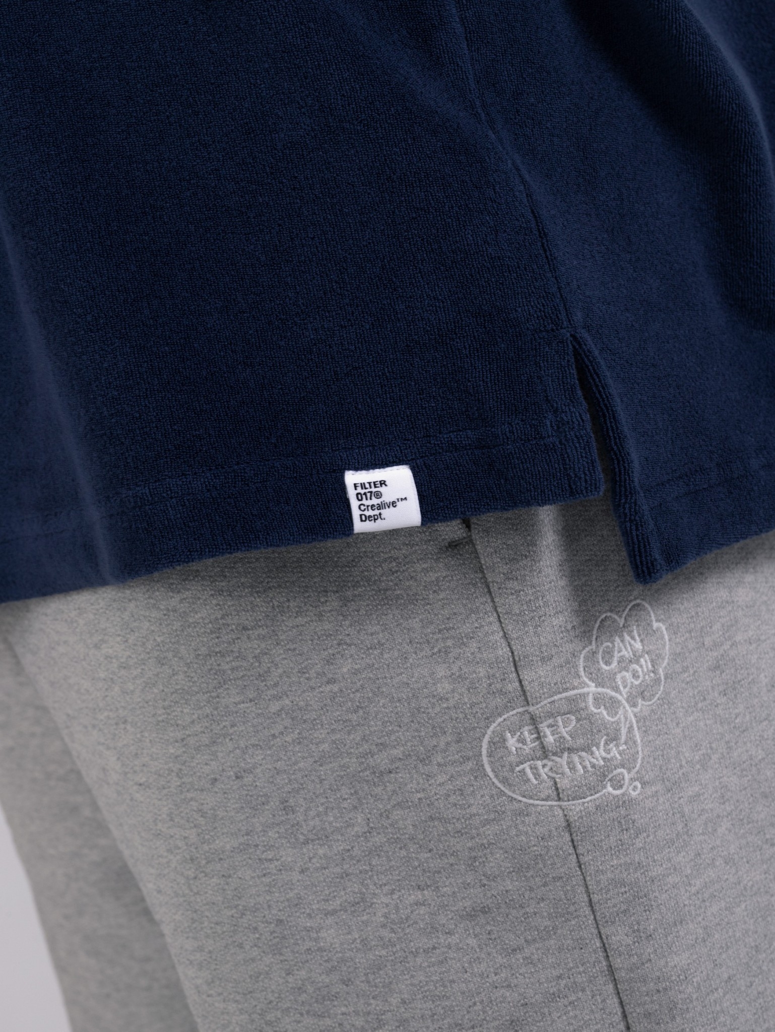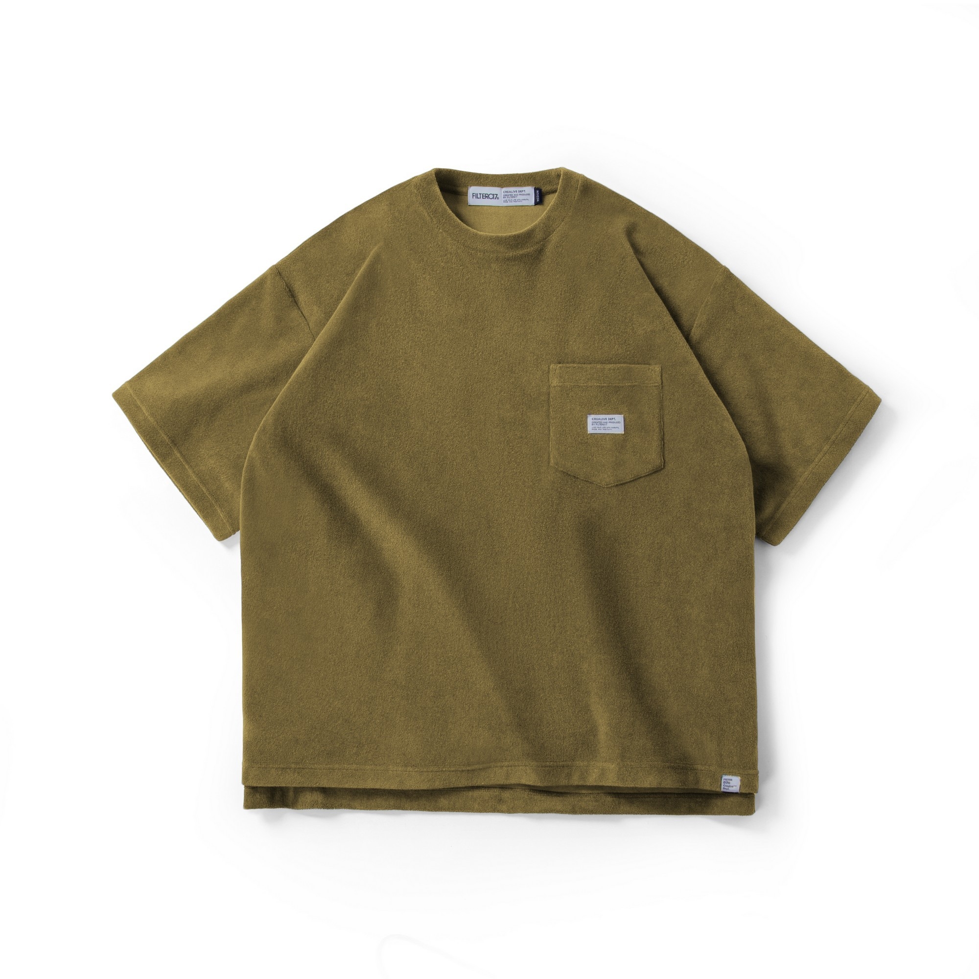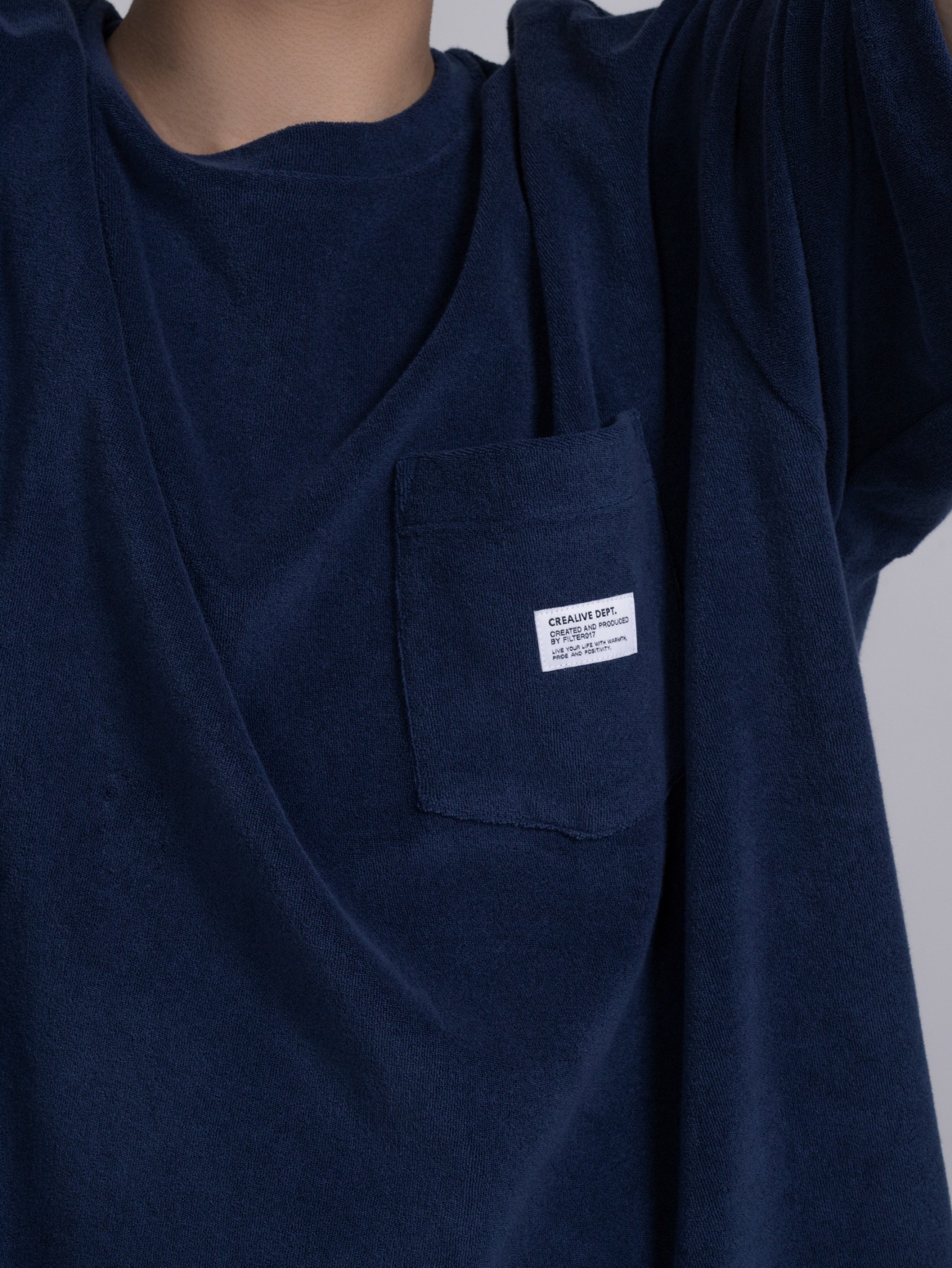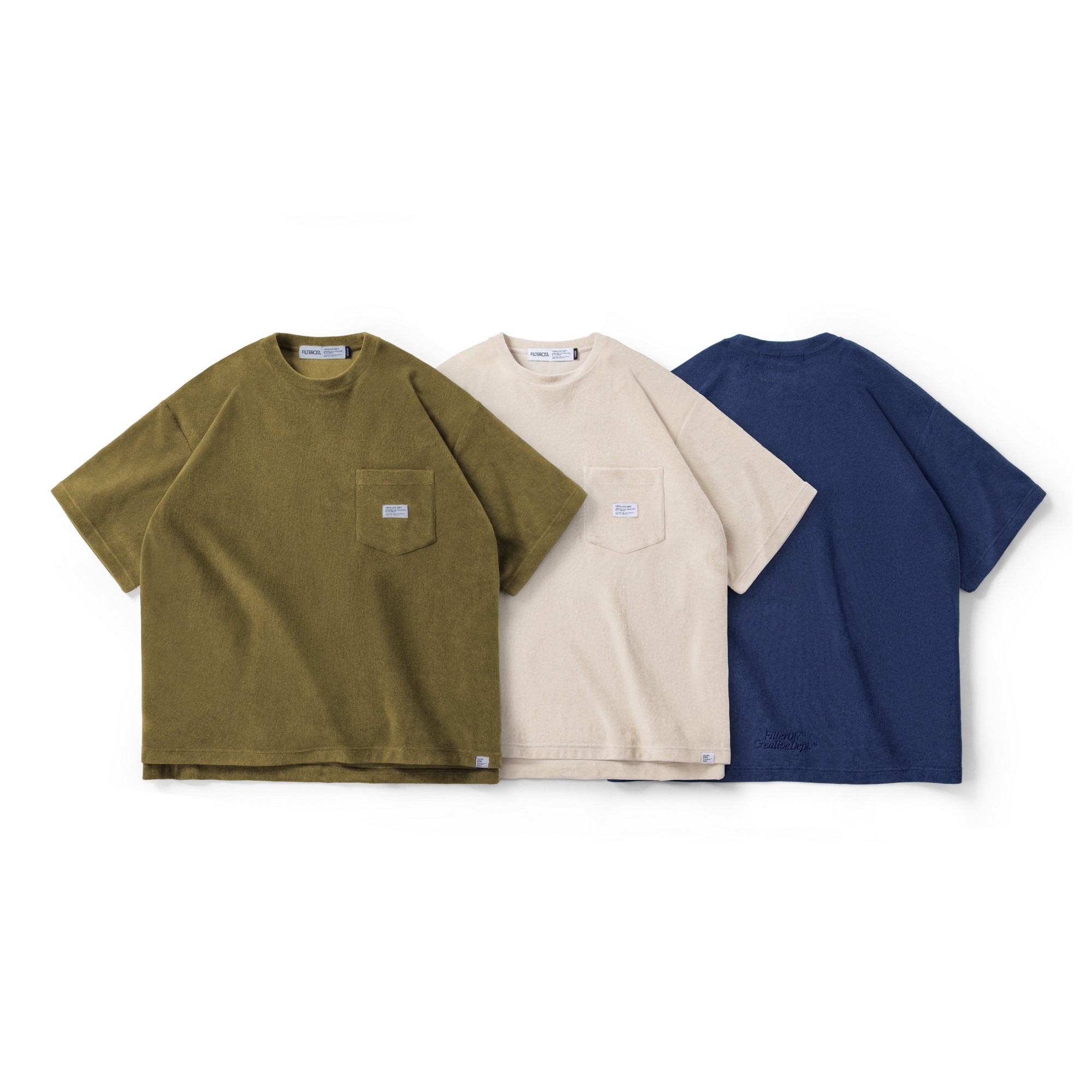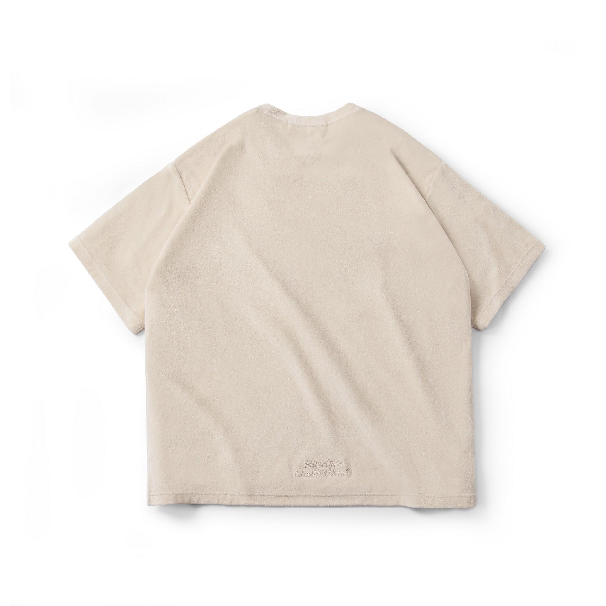 材質選用純棉毛巾布料製作,布料表面由細毛圈狀的組織構成,具有親膚、透氣、抗皺等特性,符合亞洲氣候需求,柔軟質地更是讓視覺上帶有自然垂墜感的鬆弛氛圍,無論在日常休閒或戶外皆能帶來絕佳的穿著體驗。