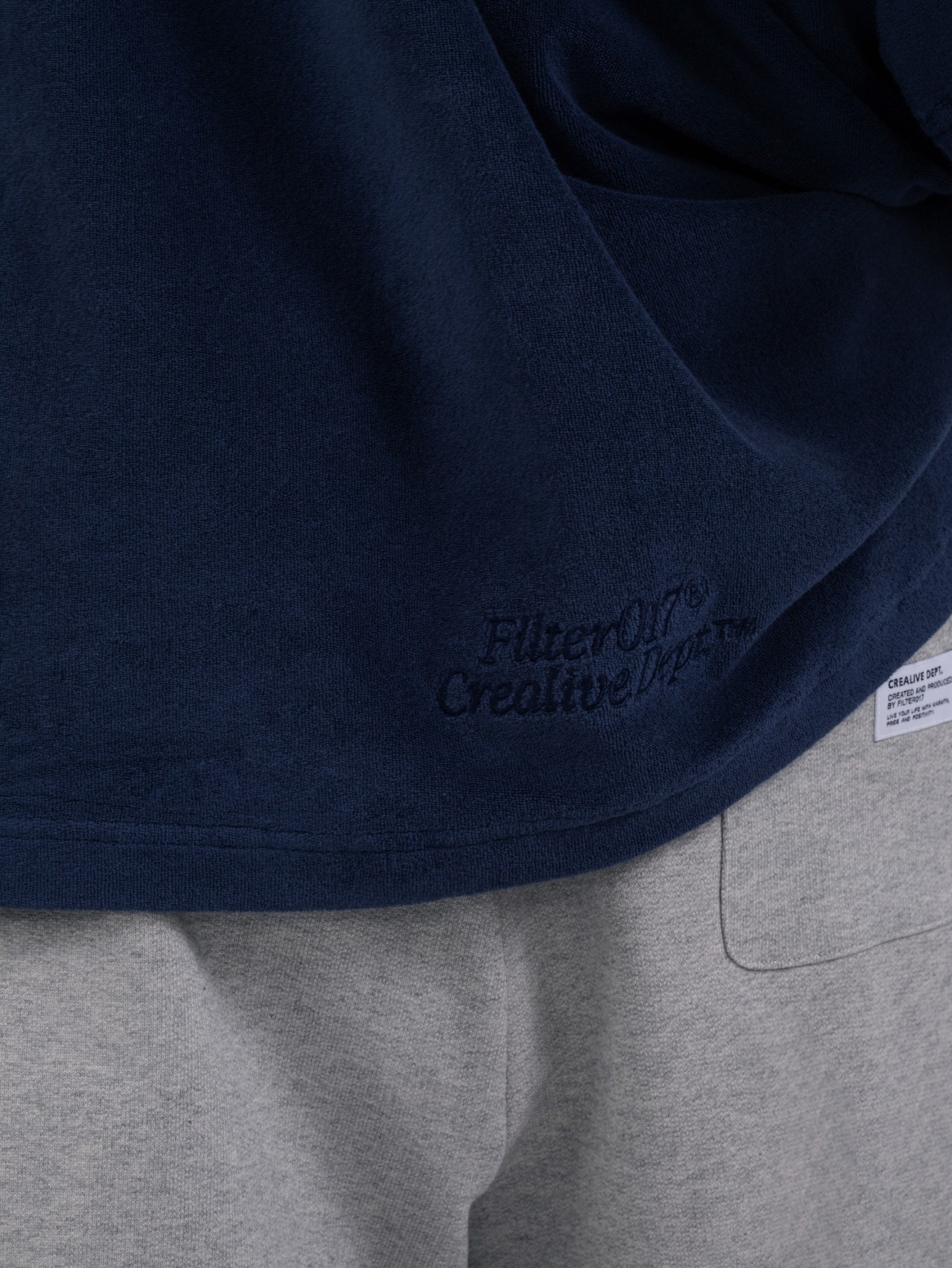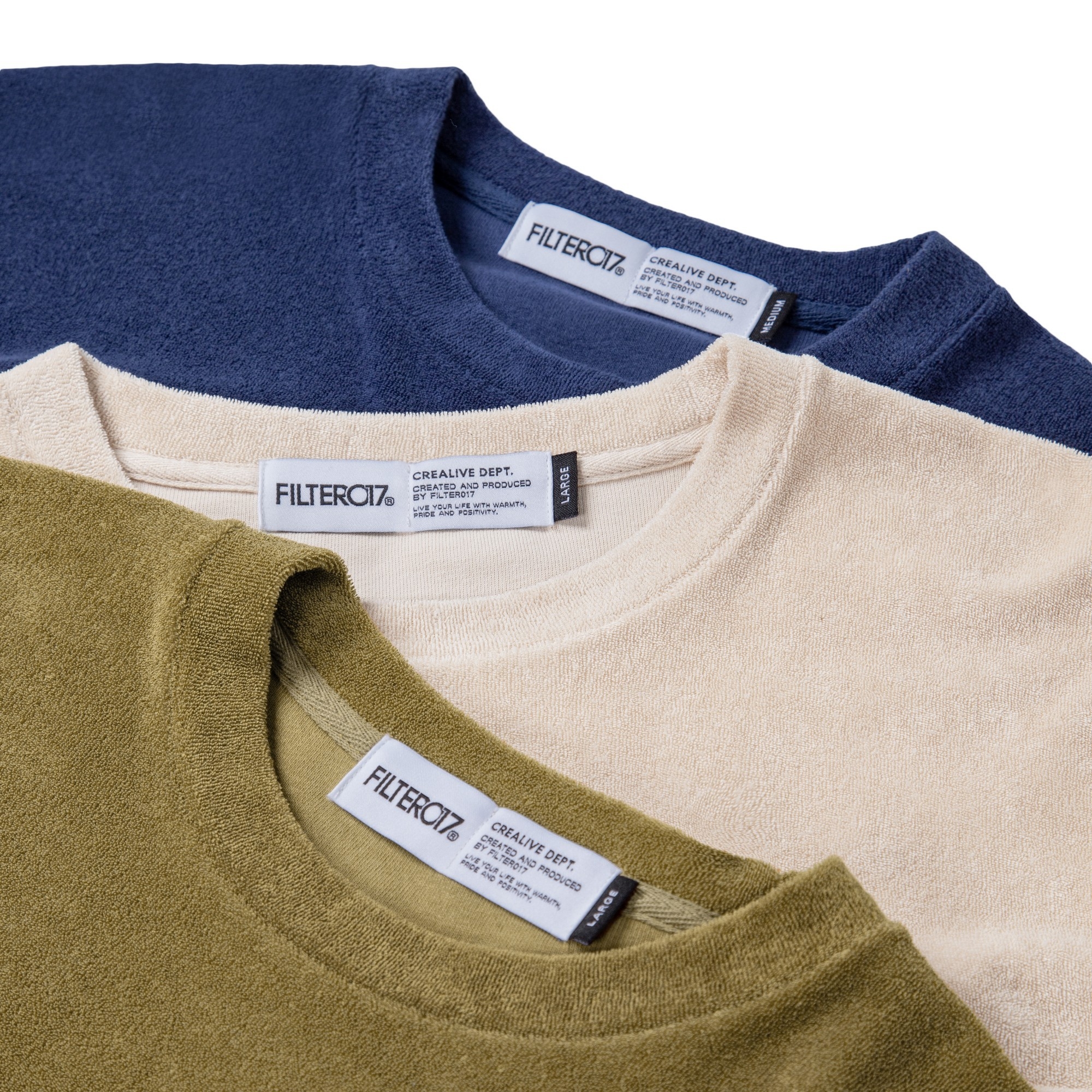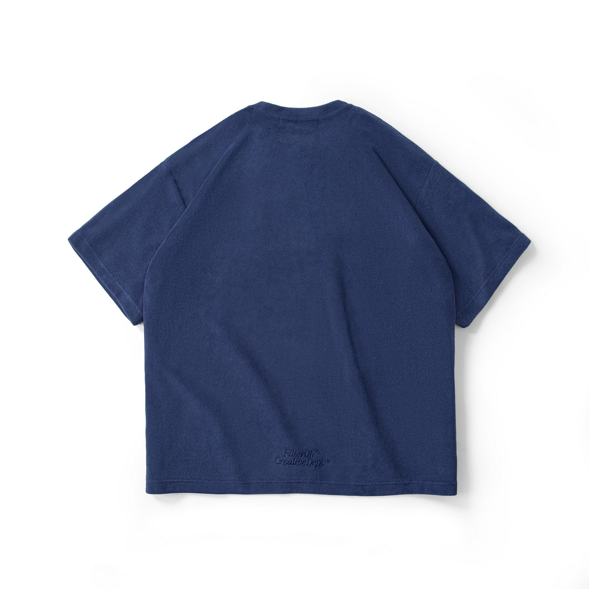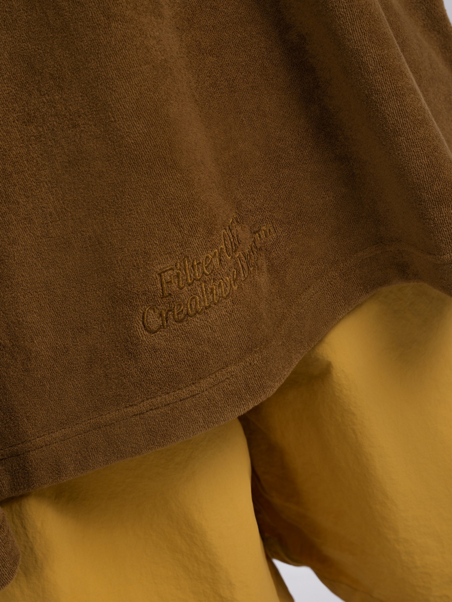 材質選用純棉毛巾布料製作,布料表面由細毛圈狀的組織構成,具有親膚、透氣、抗皺等特性,符合亞洲氣候需求,柔軟質地更是讓視覺上帶有自然垂墜感的鬆弛氛圍,無論在日常休閒或戶外皆能帶來絕佳的穿著體驗。