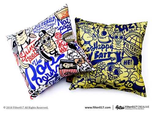 Graphic pillow of 15x15 inches cm realized by the collective of graphic designers from Taïwan : FILTER017 (Graphic designers / Graffiti Artists / Designers Toys)