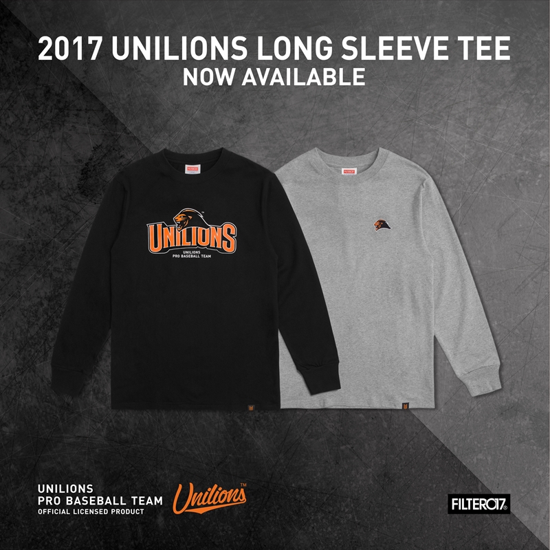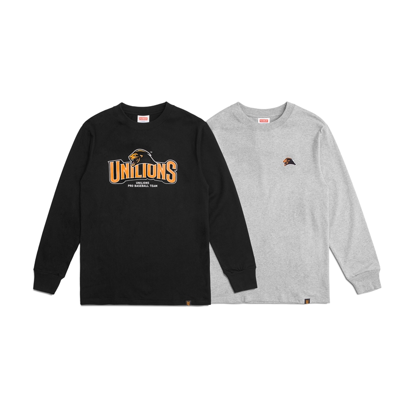 球隊UNILIONS Logo字體結合猛獅圖像,經由精緻印刷及刺繡巧妙融入於長袖T恤中,