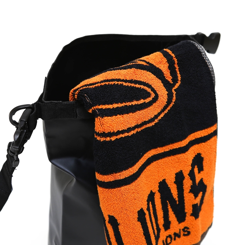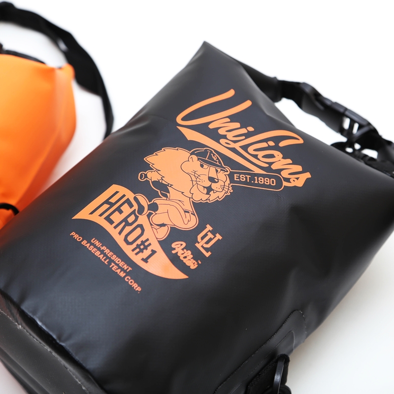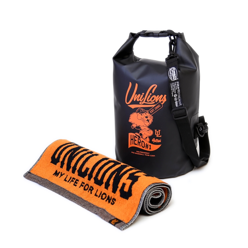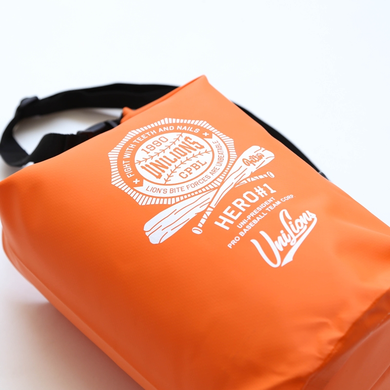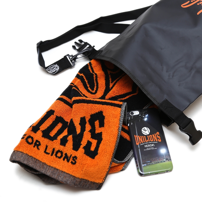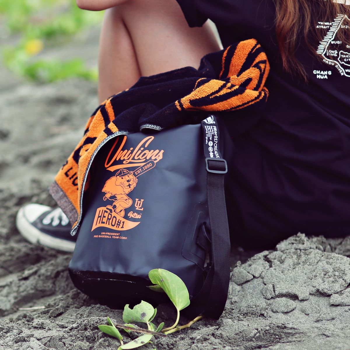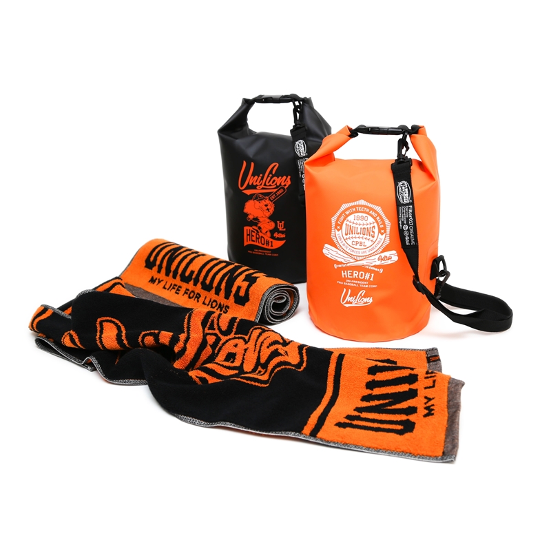 包款採用厚質防水PVC,經過高週波密合技術製成,可完全防水並耐刮不易破損,放置相機與電子儀器無須擔心遇水淋濕,搭配獅隊專屬緹花純棉毛巾,是夏日觀賽與出遊的絕佳夥伴。