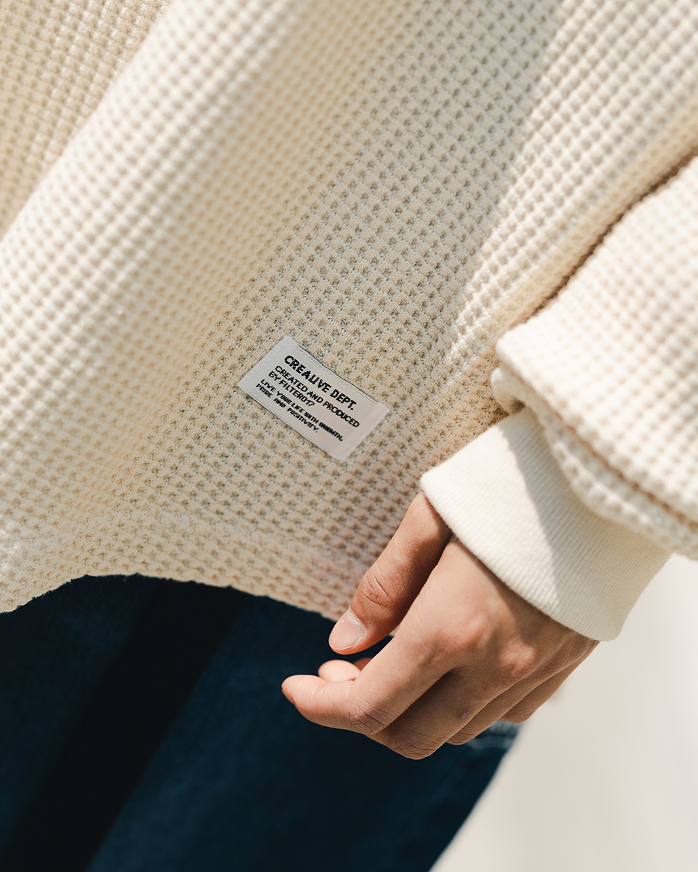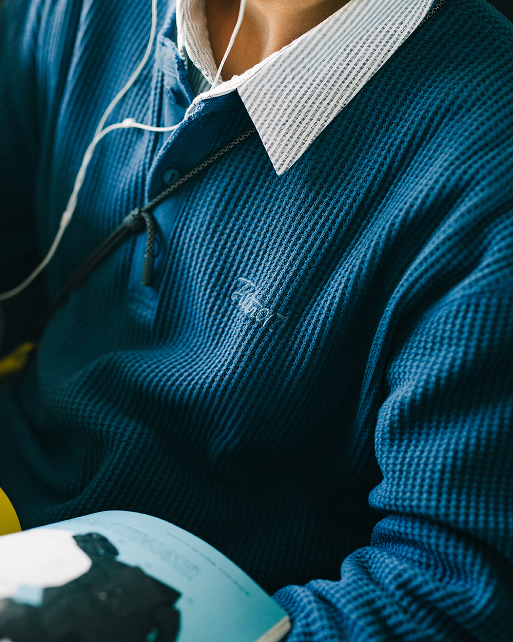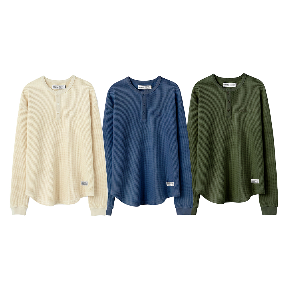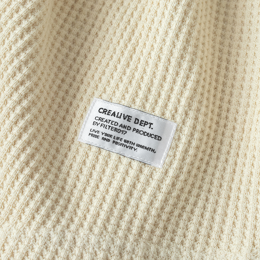 此次 Filter017® 精選優質華夫格面料,在相對基礎又具特殊性的素面材質上,搭配以復古經典的亨利領做為視覺提點,呈現俐落簡單且容易搭配的必備基本單品,稍稍偏長的衣長剪裁無論作為秋冬內搭層次或是單穿、外罩造型都十分適合