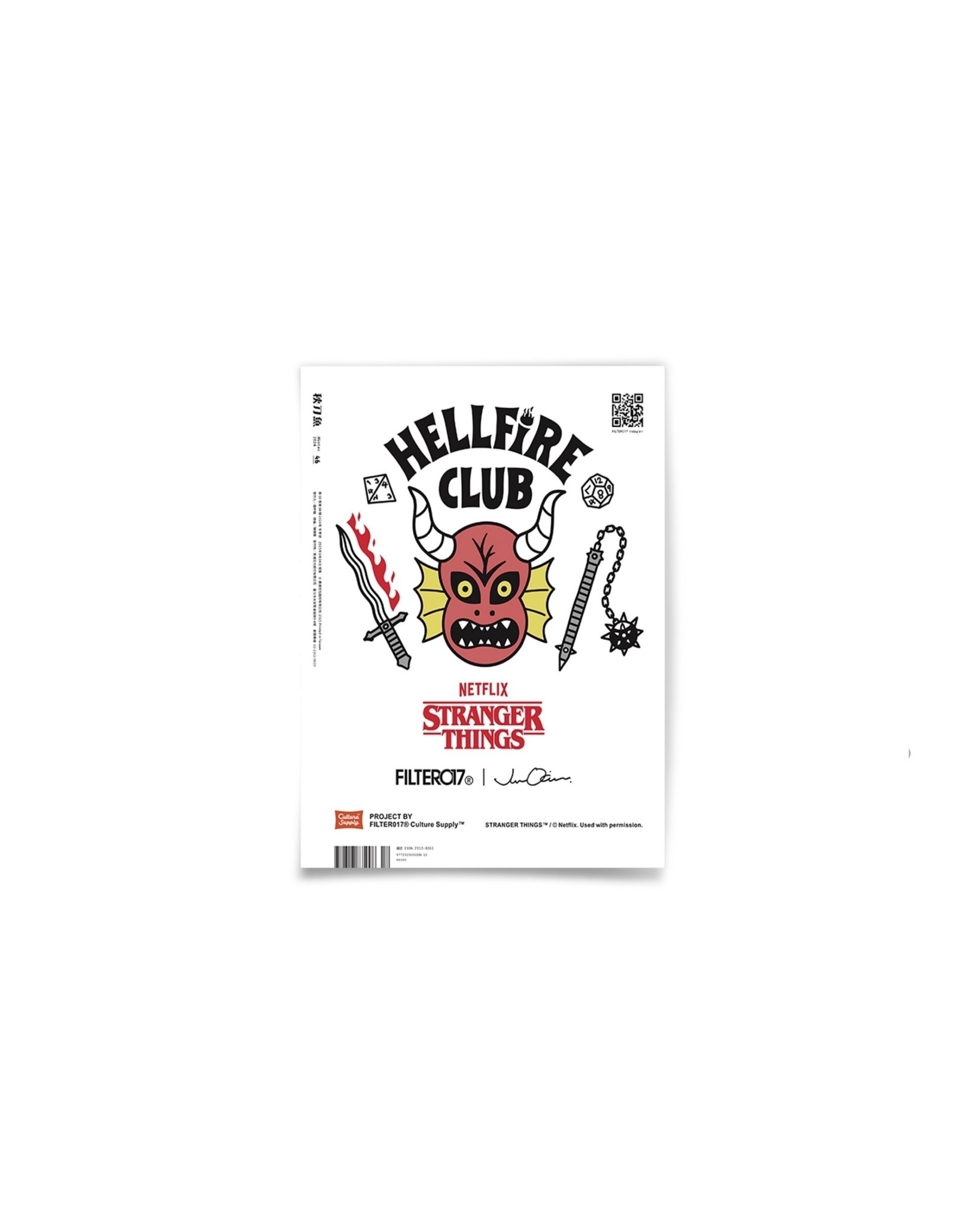 FILTER017®(@filter017)與雙雜誌《秋刀魚》(@qdymag)及《SNAPPP》(@snappp_magazine),在《秋刀魚》No.46〈American Lifestyle in Japan〉中,推出《怪奇物語》跨國聯名企畫專屬別冊附錄〈地獄火俱樂部·部員須知〉。