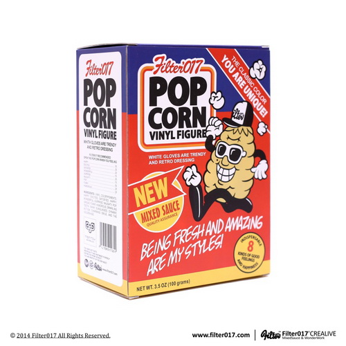 2014年,Filter017設計團隊正式邁入成軍十周年,在這一年,我們沒有舉辦盛大的慶祝派對,因為我們了解那並不是我們所擅長的,走過十年,我們選擇回頭找尋最初的本質-設計精神與創作風格,因此,Filter017終於在2014年秋天將延宕兩年的經典人物角色- 玉米人 POP CORN公仔正式重啟完成!