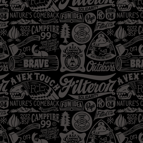 In 2012, the Filter017 design team is continuing to extend upon the theme concept of “Horror Forest.” They created images in American styles and visual designs, seamlessly incorporated classic American motifs, and blended in trademark concepts and light morbid humor in their graphic designs. As part of an effort to combine independent products with their recent inspirational theme of the “outdoors,” Filter017 launched its subsidiary line, “FCL OUTDOOR LAB.”