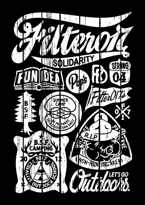 To summarize the annual collection Filter017 did for “FCL Outdoor Lab” in 2012, such as various graphic designs, symbol/logo designs, typeface designs, characters designs and pattern/poster designs, we did strive to stretch the usage of all designs into branding, merchandising and artistic exposures as much as possible.